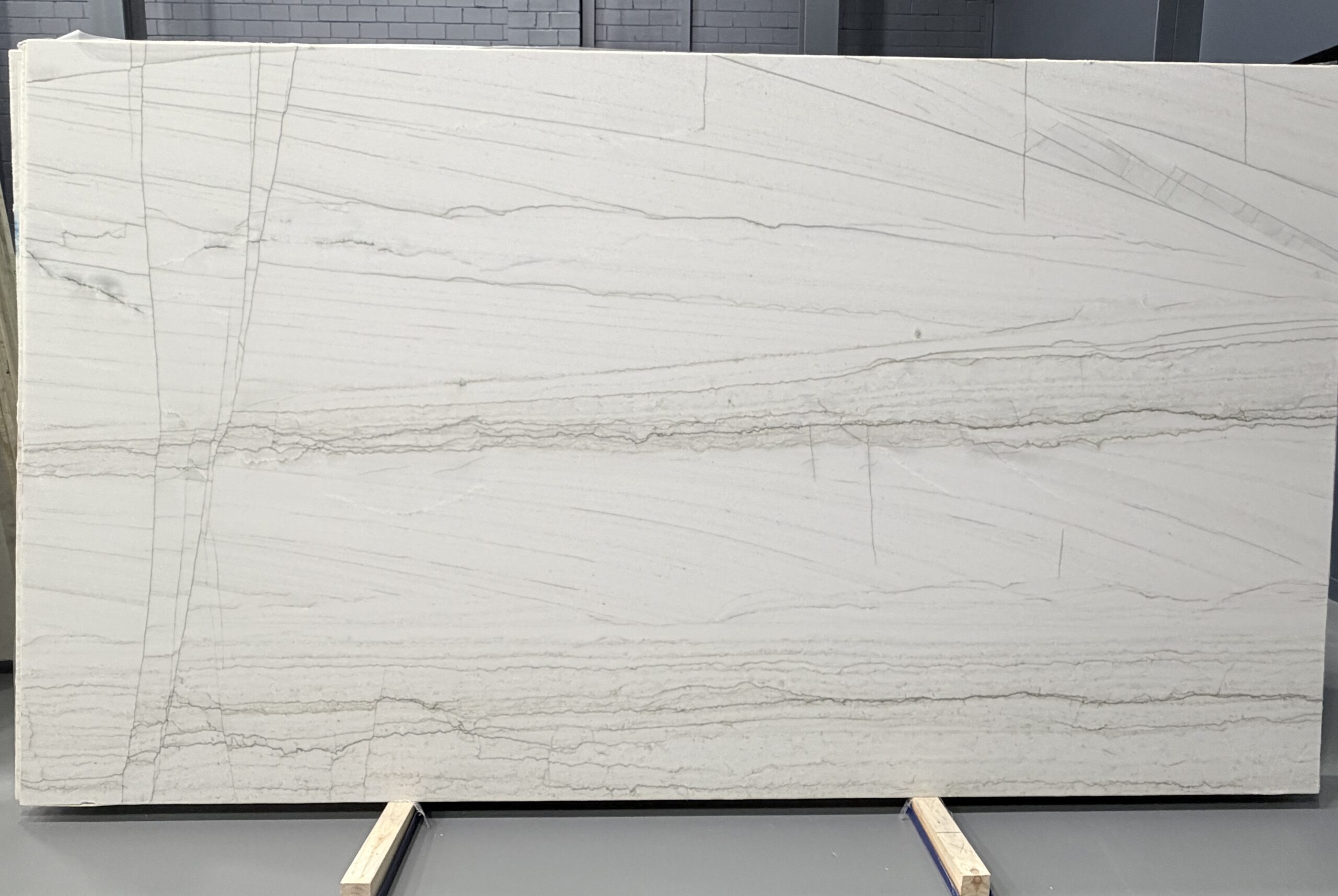 This white quartzite slab offers the luxurious look of marble with the superior durability and strength of quartzite, making it perfect for high-traffic areas such as kitchens and bathrooms.