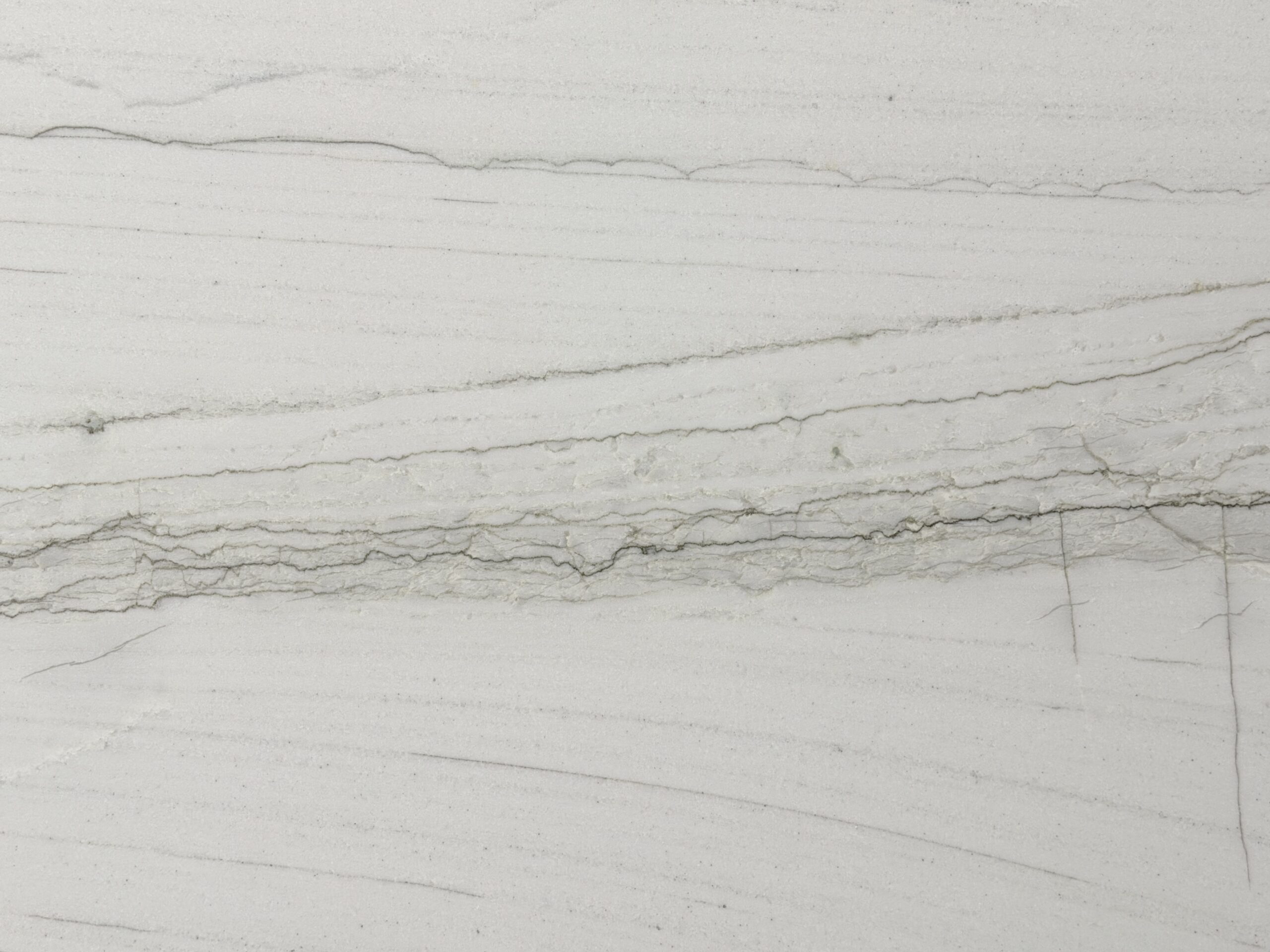 Elegant White Quartzite is a premium natural stone featuring a soft white background accented by delicate grey linear veining and subtle horizontal movement. Its refined layers and clean aesthetic make it an ideal choice for modern and timeless interior designs.